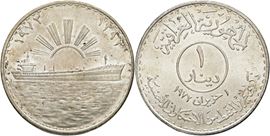 IRAQ. 1 Dinar 1973 (1393). Emissione commemorativa per il I anniversario della nazionalizzazione del petrolio; Ag (31 g)