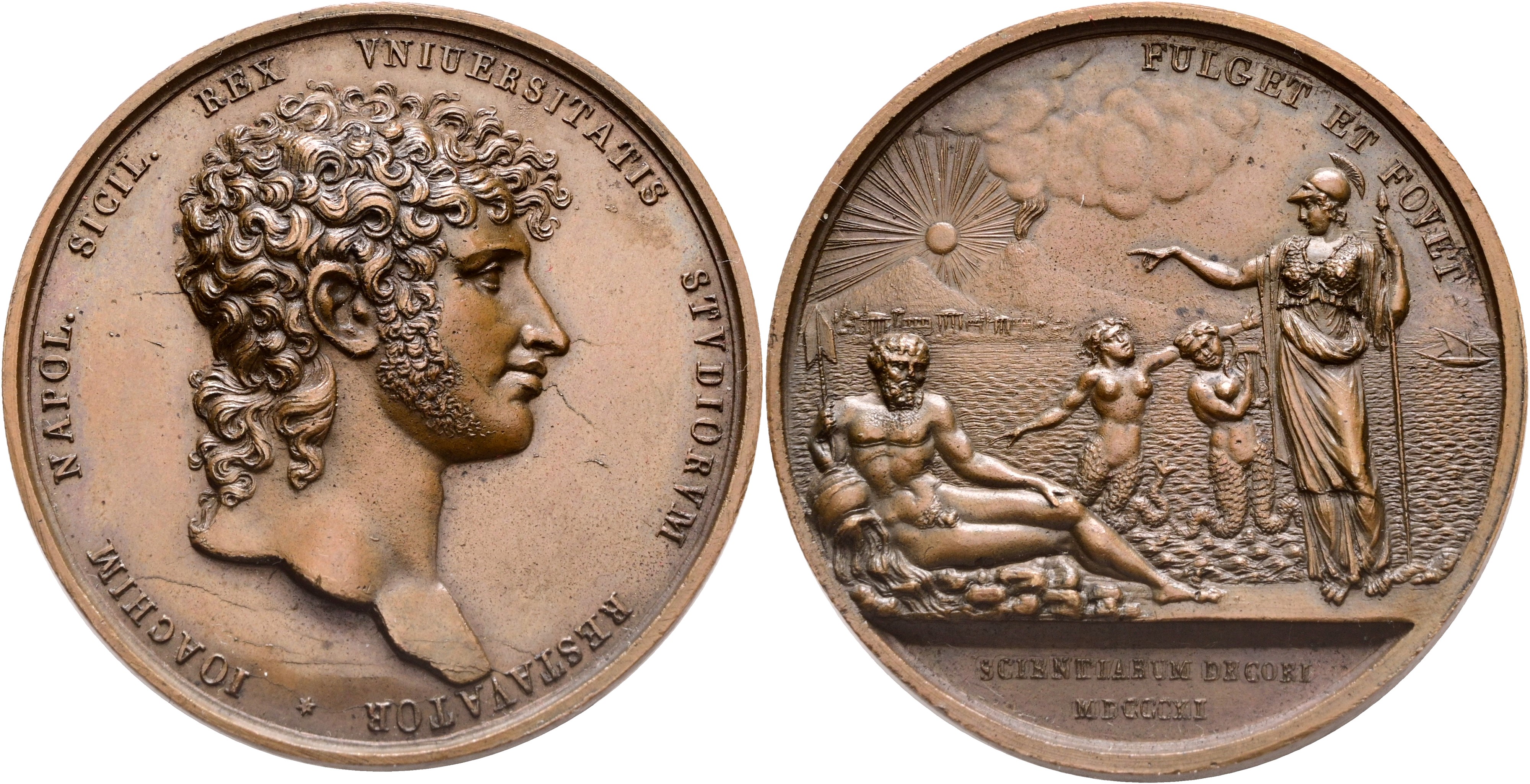 NAPOLI. REGNO DELLE DUE SICILIE. Gioacchino Napoleone Murat (1808-1815). Medaglia premio dell'Accademia delle Scienze di Napoli 1811; Æ (45,2 mm)