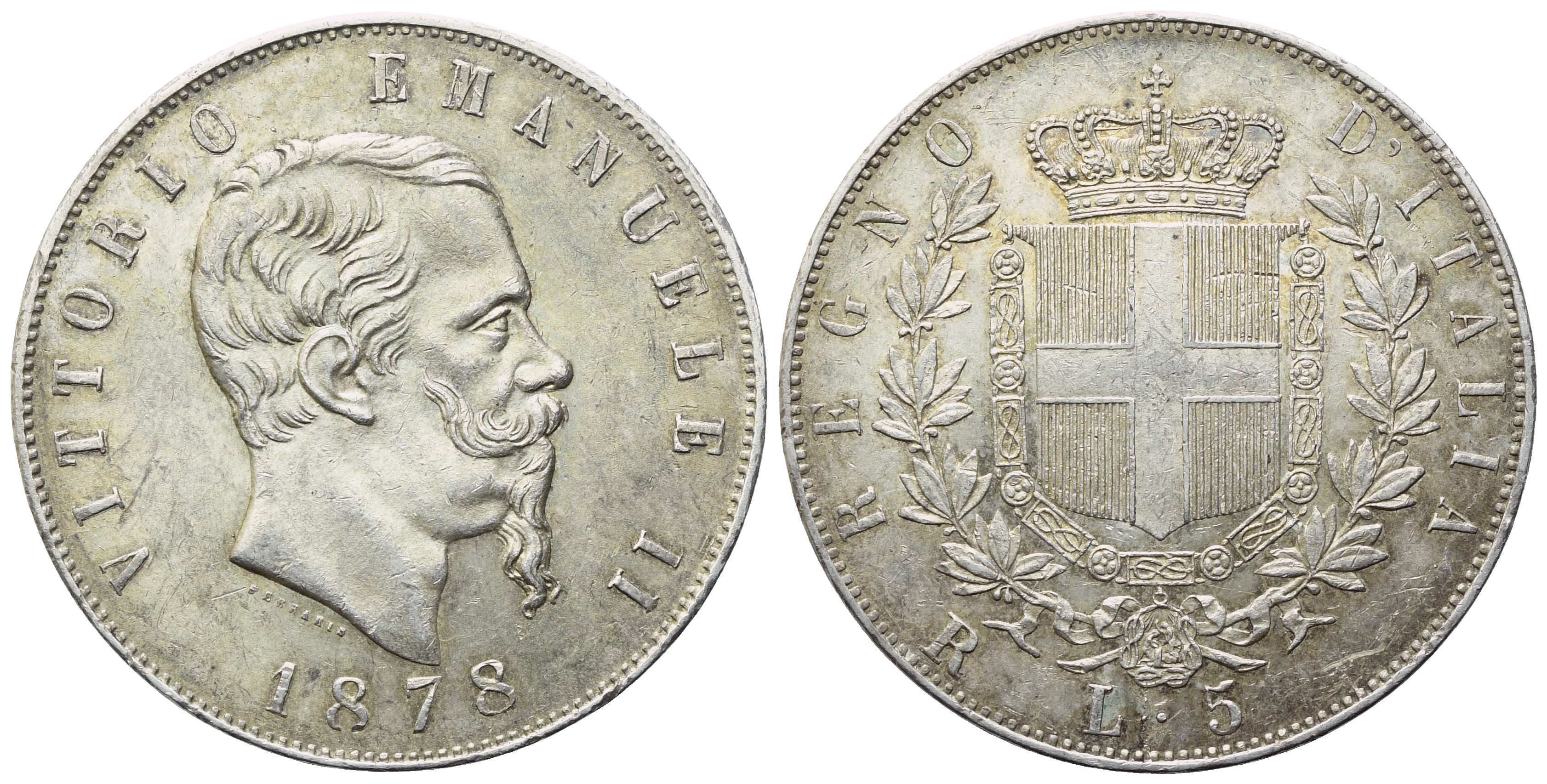 ROMA. Regno d'Italia. Vittorio Emanuele II (1861-1878). 5 Lire 1878; Ag (25 g; 36,8 mm)