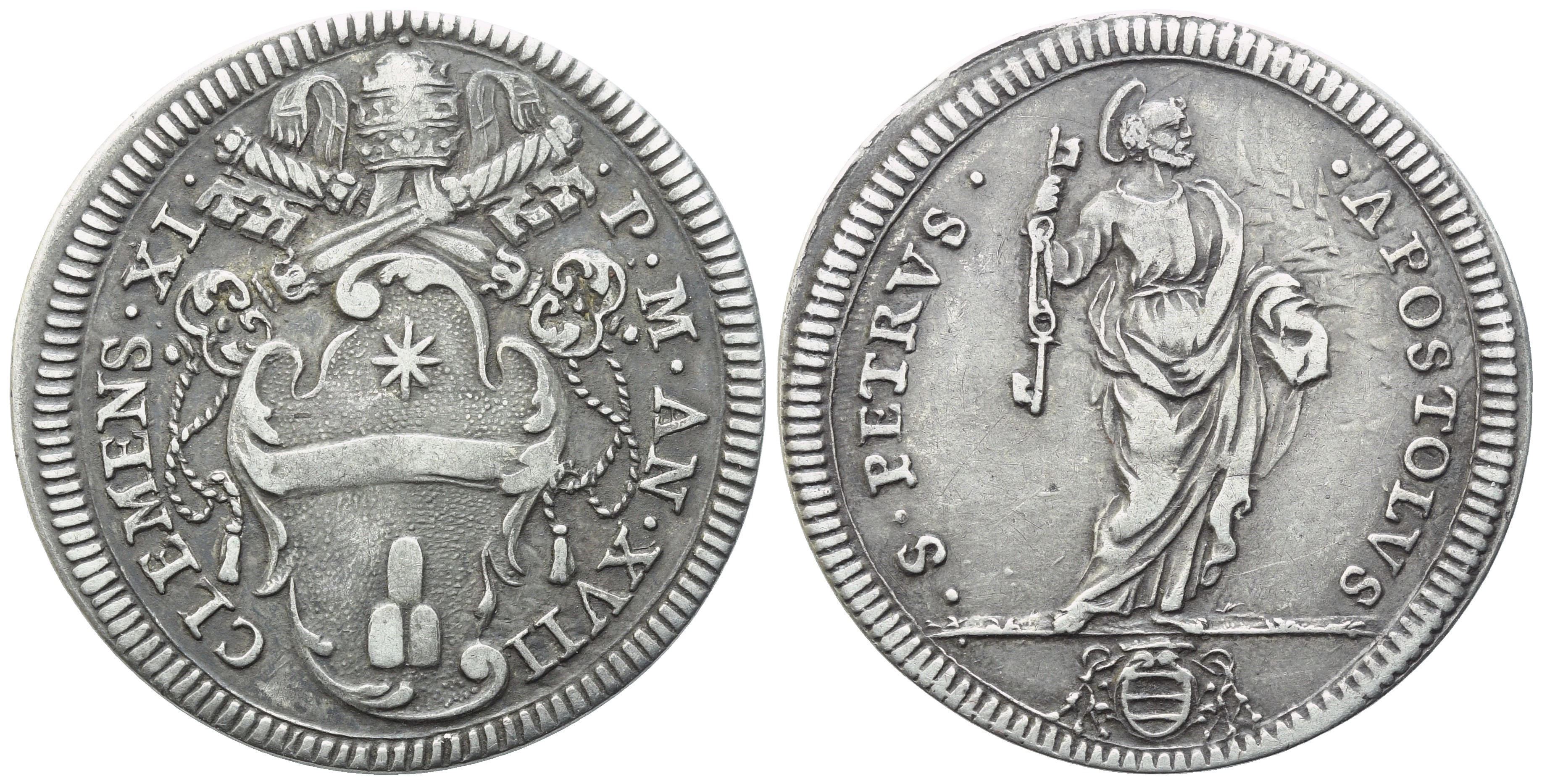 STATO PONTIFICIO. Roma. Clemente XI (1700-1721). Giulio – Anno XVII; Ag (2,93 g; 25,3 mm)