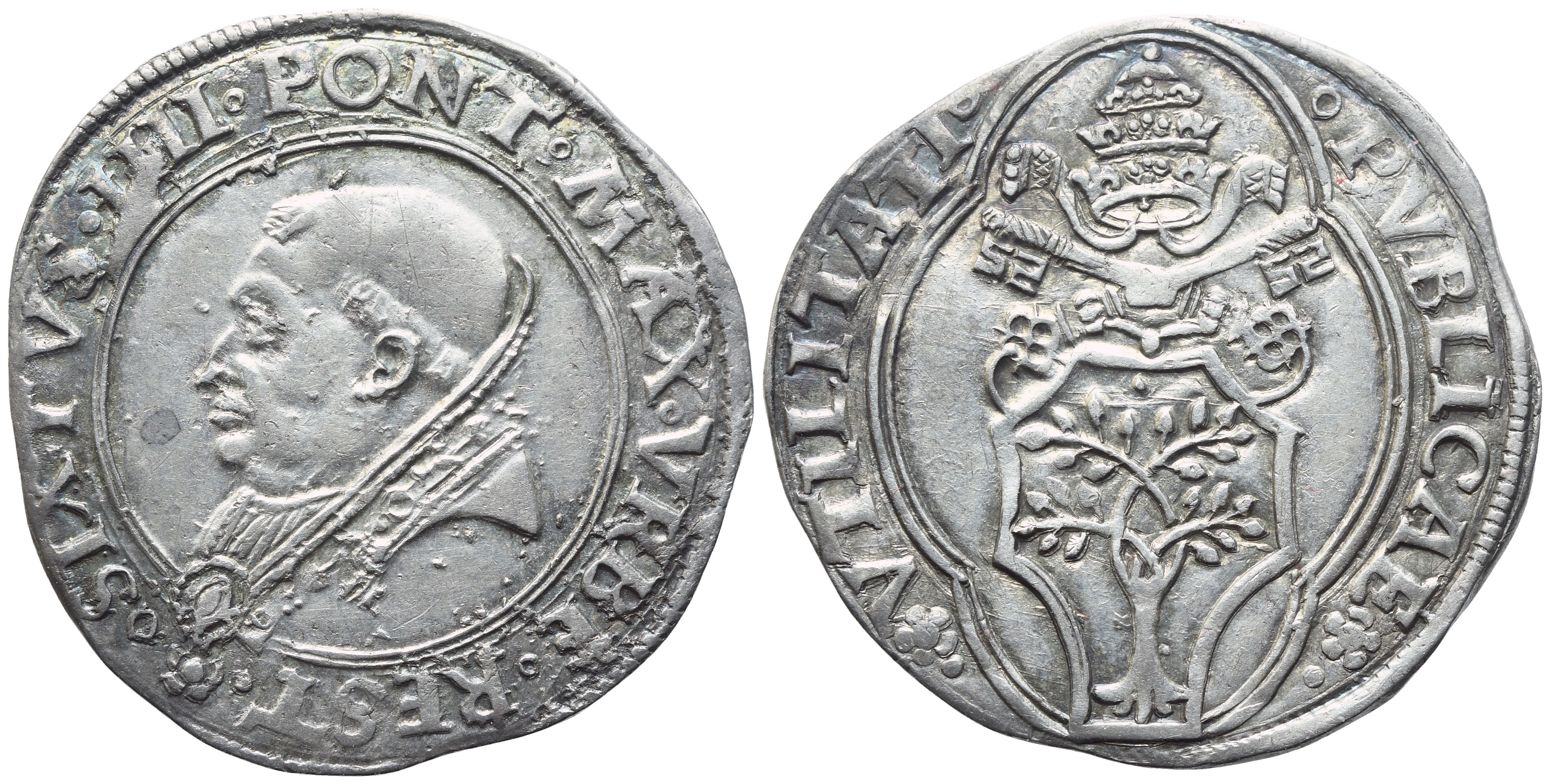 SIXTVS IIII PONT MAX VRBE REST Busto a sinistra. Rv. PVBLICAE VTILITATI Stemma sormontato da triregno e chiavi decussate entro cornice quadrilobata. CNI 64; Munt. 14; B. 451. R2. SPL+. Splendida patina di collezione. Conservazione eccezionale per la tipologia; tra i migliori esemplari sul mercato.