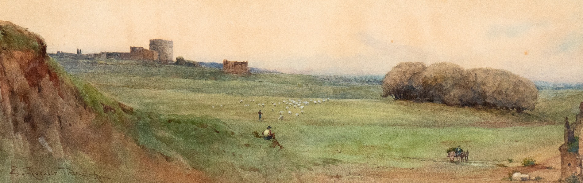 Signed lower left: E. Roesler Franz, Roma, Watercolour on paper, 20 x 67 cm