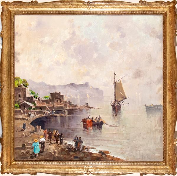 Seascape with fishermen and sailing boats